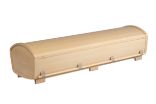 Kista i obehandlad furu som passar perfekt för direktkremation eller ceremoni med bårtäcke.